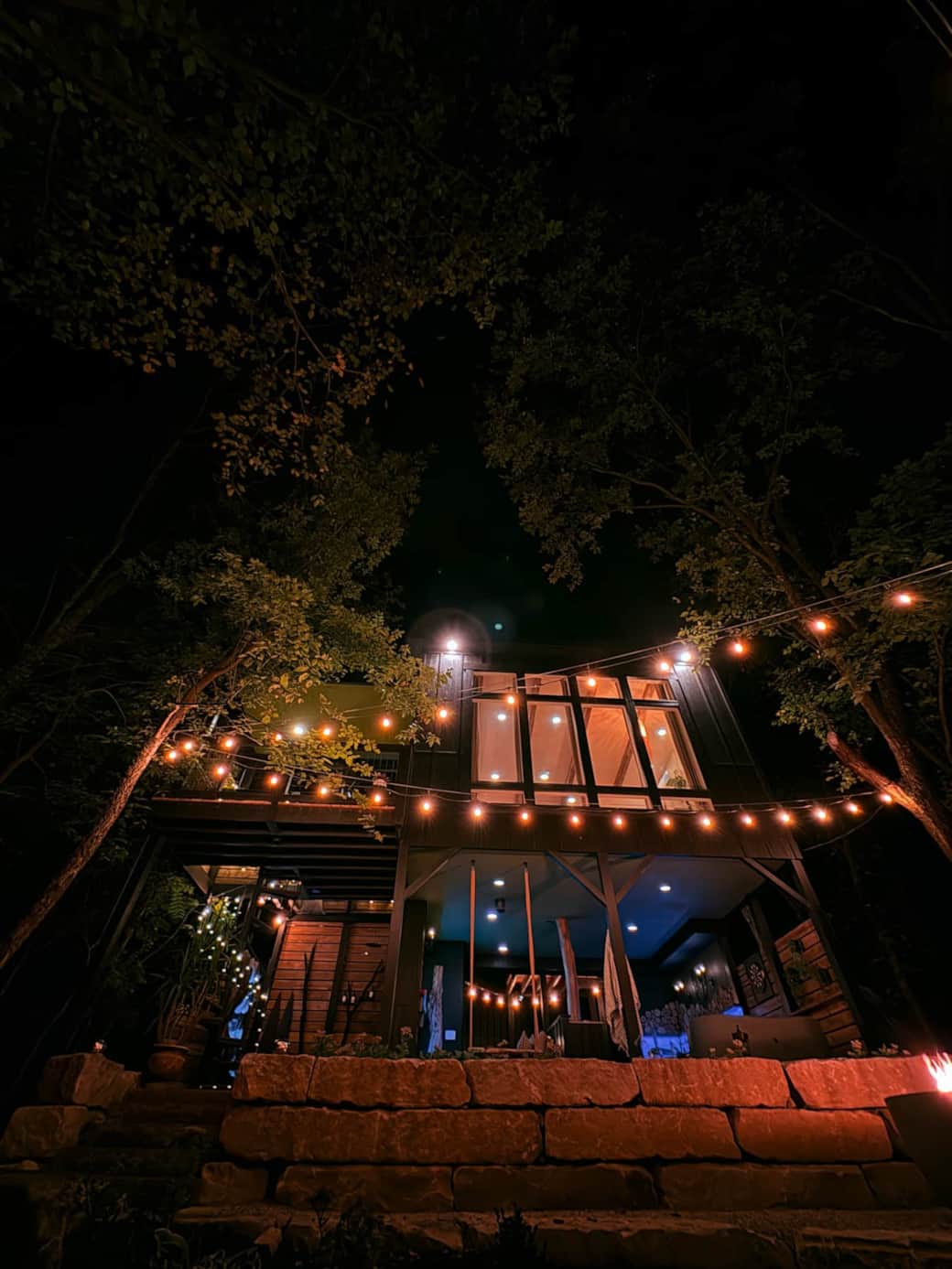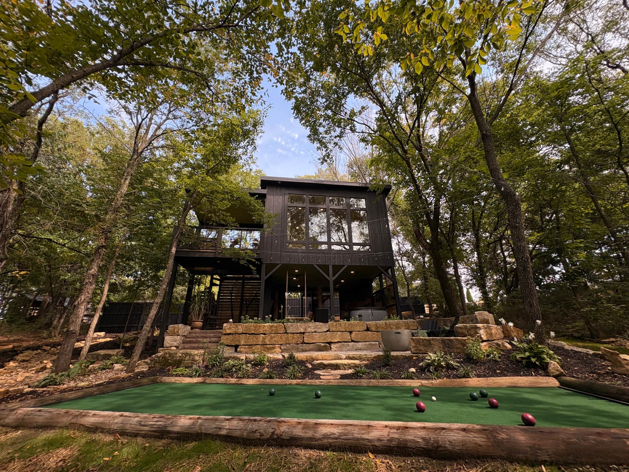 Soak in your private hot tub in the outdoor living room while watching your favorite movie. Lounge together on the sky hammock as you stargaze, or craft your own pizza in the outdoor pizza oven. Spend your day playing a friendly game of bocce ball or putt-putt, then wake to breakfast delivered straight to your deck by zipline- a whimsical touch that makes mornings unforgettable.